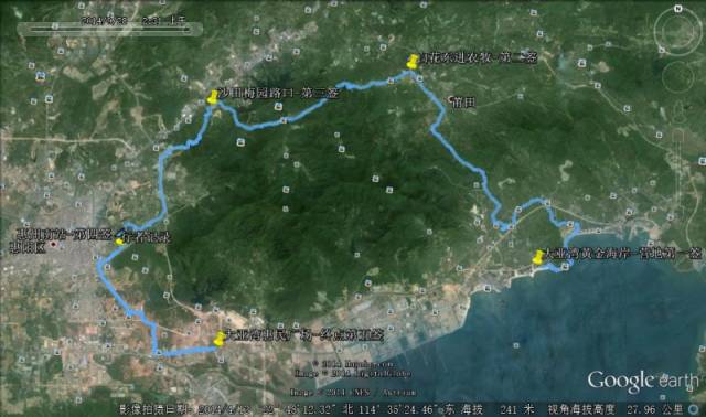 【活动线路】 1、活动全程:58公里沙滩绿道乡村山野徒步。 2、起始地点:大亚湾黄金海岸;终点:大亚湾惠民广场 3、路线详细地名:大亚湾霞涌黄金海岸(起点0公里一签)-->乌山头绿道-->小径湾-->小径湾高速路口-->旱塘村-->鱿鱼湾水库-【家庭体验15公里返回点】->明星村-->东进农牧广场(21公里二签)-->西坑尾水库-->金桔村-->沙田温泉度假村路口(35公里三签)-->石径村-->惠州南站(45公里四签)-->大亚湾惠民广场(58公里终点五签)。
